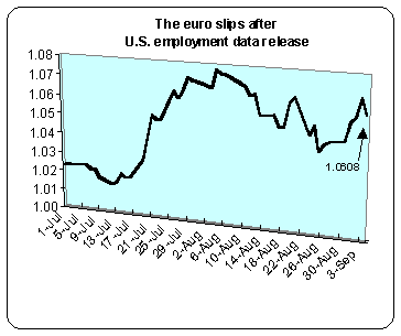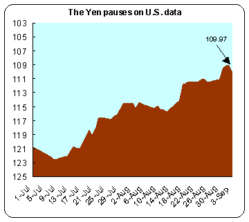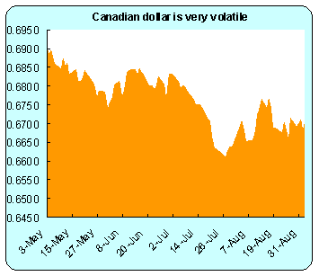 Asian markets were closed by the time the U.S. employment situation report was released. As a result, the South Korean and Australian markets finished down on the week while Japan stayed about the same despite intra-week volatility. Currencies ![]() The Canadian dollar alternately weakened and strengthened last week depending upon the markets' shifting views on U.S. interest rates. Now, interest rate spreads and Federal Reserve policy are the primary focus of the market, taking over from commodity prices which had been the day to day driving force of the Canadian dollar. The U.S. dollar rose against the yen and euro when a weaker than expected U.S. employment report was released. The report implied lower wage pressures. The markets' diminished concern - at least on Friday - that the FOMC is less likely to raise interest rates in October sent stocks soaring. However, the euphoria is sure to pass as the markets begin to focus on the U.S. inflation reports due this week and next. ![]() The dollar fell to new lows last week against the yen, as intervention became less of a threat. The market overlooked weaker than expected data. Japanese economic performance will come into greater focus this week when second quarter gross domestic product is released. With stronger growth in Europe and Great Britain, policies of the European Central Bank and the Bank of England are coming into focus. Both policy councils meet this week. While analysts are not expecting rate increases yet, the statements following the meetings will be closely studied for hints of future action. ![]()
