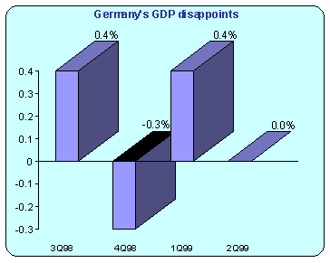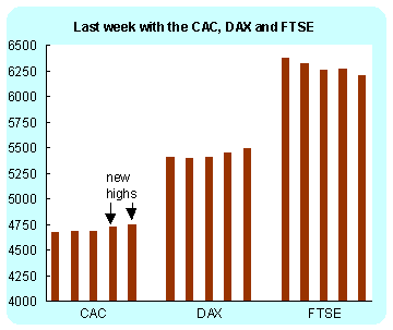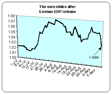 Last weeks indicators Pan-German second quarter gross domestic product (seasonally adjusted) was at the low end of expectations, unchanged on the quarter and rising just 0.6 percent on the year. The main positive contributor was inventories. The August consumer price index was revised down to a level below expectations. The CPI fell 0.1 percent on the month and rose 0.7 percent on the year. ![]() The July seasonally adjusted German trade surplus stood at 6.5 billion euros on a nominal basis, up slightly from June. German exports increased 1.4 percent on the month and 2.9 percent when compared with last year. Imports rose 1.4 percent both on the month and on the year. If the large surplus continues, net exports will make a stronger contribution to third quarter GDP than it did in the second quarter. The strong non-European Union export growth also suggests that Germany is benefiting from the recent weakness of the euro. The decline in the value of imports came as a surprise since import prices and raw materials prices rose strongly in recent months. France - Nominal wholesale sales rose one percent in June after a 3.2 percent increase in May. Second quarter sales were up 1.7 percent compared to the first quarter and were 4.1 percent above the previous year period. June sales increases were the result of divergent trends. Gains were led by a 2.8 percent recovery in capital goods and a one percent jump in consumer goods. By contrast, semi-finished goods sales were down 0.2 percent on the month but still up 3.8 percent on the quarter because the surge in oil prices boosted fuel sales. Gross Domestic Product rose faster than most analysts had expected. The increase was almost entirely due to stronger domestic demand, and in particular consumer spending. Second quarter GDP rose 0.6 percent after a 0.4 percent increase in the first quarter. ![]() August's preliminary consumer price index continues to show there are only very weak inflationary pressures in Euroland's second largest economy and backs the European Central Bank's assessment that Euroland inflation is well under control. August's 0.1 percent rise was led by the ongoing increase in oil prices. In addition, the traditional jump in clothing prices after July's discounts boosted manufacturing prices. Real retail sales rose 2.1 percent in June, due to a surge in hypermarket sales. Food store sales recovered 7.5 percent on the month, led by a 15.1 percent surge in hypermarket sales. Non-food retail sales fell back 3.6 percent on the month, reflecting downward trends in both specialized and non-specialized stores. Vehicle sales and repairs were up 0.4 percent in June United Kingdom - July manufacturing production rose 0.3 percent but was still down 1.4 percent when compared with a year earlier. The figures were in line with market expectations and confirm that the sector is pulling out of recession. Total output was up 0.3 percent but was down 0.7 percent on the year. July industrial production was marginally stronger rising 0.3 percent on the month but declining 0.7 percent on the year. The CBI distributive trades' survey painted a fairly upbeat picture for UK retailers in August but data from the British Retail Consortium showed more subdued growth.