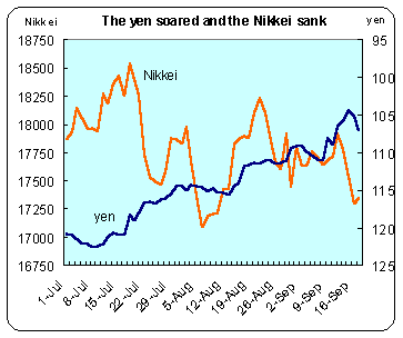Most equity markets ended the week on a decidedly negative note despite gains on Friday. Mother Nature and market events conspired to drive key world markets down on the week. Japan enjoyed a bank holiday on Wednesday, but Hong Kong was forced to close its markets Thursday because of a monster typhoon. And hurricane Floyd raked the U.S. east coast, distracting market participants and forcing the bond market to close early Thursday. There were plenty of economic indicators for the market to digest; but traders proved insatiable when it came to news about the U.S. economy. They were looking for the next data set even before the last was absorbed.
