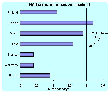 The September harmonized consumer prices were unchanged but climbed 1.2 percent when compared with last year. Core inflation fell 0.1 percent and rose 0.9 percent on the year. EMU inflation has remained very subdued despite higher energy prices, suggesting that deregulation and stiff competition at the retail level is holding down consumer prices.