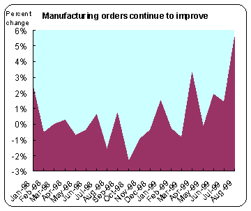 July-August seasonally and workday adjusted manufacturing output rose 1.2 percent. June output was revised up to 1.1 percent from 0.9 percent indicating that growth was stronger than most analysts had expected. (Given the traditional economic slowdown during the vacation month of August, production data for the July-August period are compiled as a single month, with July recording any changes and August output considered flat on the month.) All manufacturing sectors posted strong growth in July-August except for the capital goods sector, where output was flat after a 1.5 percent rise in June.