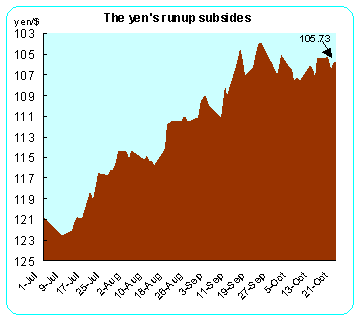 The yen bounced around within a narrow range last week as market participants looked for signs of change in the Bank of Japan's policy actions. The Bank's monetary policy committee meets on Wednesday. The yen opened trading last week at 1.0542 and closed the week at 105.73.