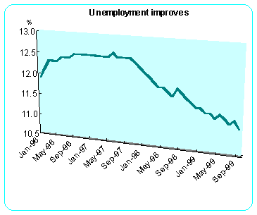 France September's seasonally adjusted number unemployed dropped to 11.1 percent from 11.3 percent in August. France uses the International Labor Organization definition of unemployment and excludes job seekers that did any work during the month. When compared with September 1998 when the ILO rate stood at 11.8 percent, unemployment was down 169,000 or 5.5 percent. The drop in unemployment was sharper than expected. ![]()