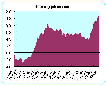 The November Halifax house price index dropped a seasonally adjusted 0.5 percent on the month, sharply reversing the previous month's strong rise. This should be seen more as a correction than the beginning of any downward trend. The annual rate declined, but is a very strong 10.7 percent. Last month's annual rate of house price inflation of 10.8 percent was the fastest since August 1989. The latest Halifax figures may offer some comfort to the Bank of England's Monetary Policy Committee which has clearly been worried about the strength of the housing market and has cited it as a factor behind decisions to raise interest rates.