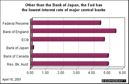 This past week could be divided into two parts - before 10:55 am EDT on Wednesday and after. That was when the Federal Reserve announced its latest inter-meeting 50 basis point interest rate cut, taking the federal funds rate to 4.5 percent and holding its easing bias. This opens the door for another rate cut at their next meeting. They truly caught the markets off guard, with few expecting a rate cut before their May 15 meeting. The FOMC did not act on any specific indicator (although they did have advance information on the weekly unemployment claims data that are usually released Thursday mornings). Rather the Fed gave a whole host of reasons, including weakness in investment and profits, souring business climate, fear that the stock market decline could hurt consumption and slowing overseas growth.