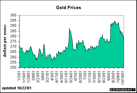 reflected the economic crisis in Southeast Asia. Gold is very important in this region of the world. By October 1999, gold prices were