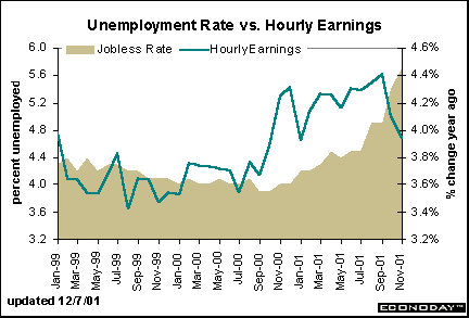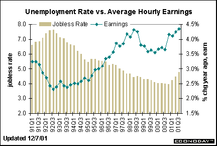 Unemployment Rate vs. Hourly Earnings