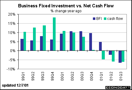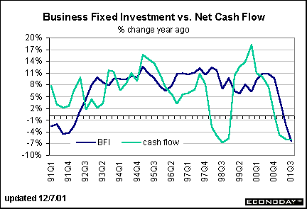 Cash flow growth was zero or negative in the past four quarters - causing a negative trend for business fixed investment as well. When cash flow heads back up, so will capital spending.