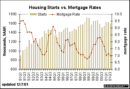 Income and interest rates are the two key factors that affect housing activity. More housing construction translates into increased demand for furniture and appliances as consumers refurnish their new homes. The rate of housing construction peaked in the first quarter of 1999.