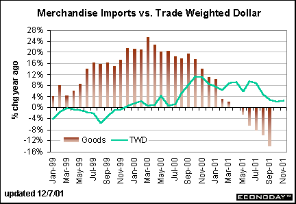 Import growth accelerated in 2000 after briefly moderating its pace in 1999. To some extent, this represents increased demand for oil, but also capital goods.
