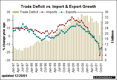 Don't expect much of the production growth to come from the export sector. The international trade deficit on goods and services widened