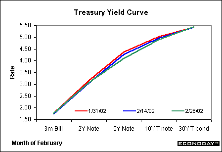 points in its yield for February. The 10-year note fell 14 basis points, while the 5-year note outperformed the