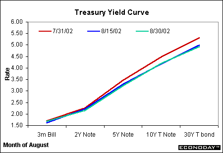 Supply was a looming issue for Treasuries, as the quarterly refunding auctions occurred early in August. Thankfully for Treasury investors, there was room in the market for an extra supply of new 5- and 10-year notes. The Fed's decision to not raise interest rates initially caused some pessimism among Treasury market players, but helping to soften the blow was the Fed's accompanying statement that pointed to continuing weakness in the economy.