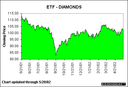 The S&P 500- related SPRDS ETF was the first to trade publicly. It has generally followed the market, with the largest declines being near the September 11th attacks. However, it is interesting to note that the price of this ETF still trades in a tight range, while if one were to invest in an S&P 500 Index Mutual Fund, one would have seen greater losses.