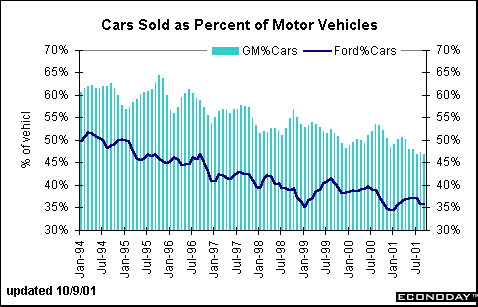 As evident in the chart above, auto sales have headed down during much of 2001 from the levels seen in 2000. At the same
