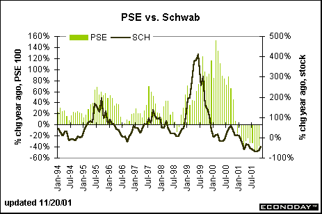 broker with a strong tendency toward online trading, we guessed that the movement in Schwab's stock price would parallel the Nasdaq