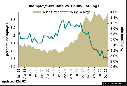 The unemployment rate jumped to 6 percent in November. It remains in its at the high end of its range of the past several months. Labor market conditions haven't changed much these past two quarters. Hourly earnings are moderating; this bodes well since it suggests that inflationary pressures are not in the pipeline.