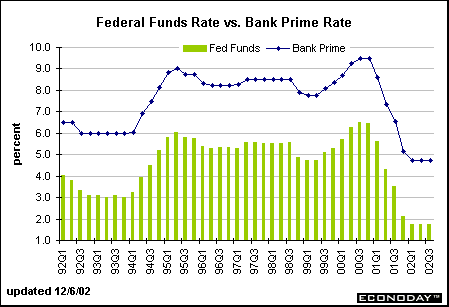 In the 1980s, the spread between the federal funds rate and the bank's prime rate was 174 basis points, slower than the 302 basis point spread averaged in the 1990s. While it does appear that banks got greedy in the 1990s, the reality is that the "bank prime rate" has a different meaning today. In the 1980s, the prime rate was considered the lowest and best rate reserved for banks' best customers. In the mid to late 1980s, the best customers were getting charged lower rates that the prime rate. Banks changed the name of the prime rate to "corporate base rate." These days, many consumer and small business loans are tied to this rate. As a result, the spread remains high at 300 basis points.