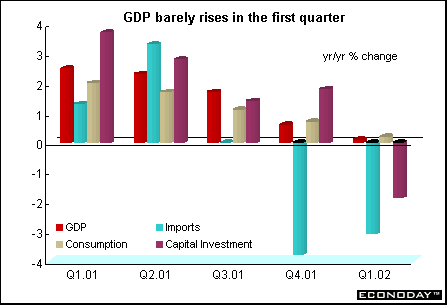 Indicator scoreboardGermany — April Statistics Office seasonally and workday adjusted retail sales excluding autos and gas stations fell 2.4 percent and 1.9 percent when compared with last year. However, the Bundesbank seasonally adjusted data excluding auto and gas station sales rose 1.8 percent in April but declined 2.2 percent on the year. Data issued by the Bundesbank for real seasonally adjusted retail sales including autos and gas stations rose 1.5 percent but fell 2.2 percent when compared with last year. The explanation for the difference in results is the different seasonal adjustment methods the two agencies use. They can give quite different results, particularly in March and April due to the changing time of Easter.  April seasonally adjusted industrial production rose 0.2 percent but fell 2.0 percent when compared with last year. The slight increase was due solely to a 2.3 percent gain in investment goods production and a 2.4 percent rise in energy goods output. All other categories declined on the month. Total manufacturing output rose 0.3 percent, the same as in March. Construction sector output dropped 3.0 percent after sinking 6.2 percent in March. Excluding construction, April industrial production rose 0.4 percent on the month after rising 0.3 percent. Seasonally adjusted west German industrial output rose 0.3 percent after falling 0.2 percent in March, while in the east production fell 1.1 percent in April after a 1.0 percent drop in March.  April non-adjusted merchandise trade surplus declined to €9.3 billion from €11.7 billion in March. On a seasonally and calendar adjusted basis, exports rose 2.1 percent while imports rose 4.8 percent. Compared to a year ago, April unadjusted exports rose 5.7 percent while unadjusted imports fell 0.5 percent. The Statistical Office data must be interpreted cautiously, since they are adjusted for neither seasonal nor inflation effects. France — April seasonally and workday adjusted industrial output rose 0.4 percent and was up 0.9 percent when compared with last year. Manufacturing output was up 0.5 percent and 0.2 percent on the year. Auto output was up 1.2 percent for the second month. Consumer goods rebounded 0.9 percent after a 0.3 percent dip in March. Capital and semi-finished goods output remained soft, with monthly growth up marginally to 0.3 percent and 0.2 percent, respectively. Energy output rose 1.4 percent after rising 2.1 percent in March. April seasonally adjusted merchandise trade surplus rose to €1.894 billion. Exports rose 4.7 percent led by increases in capital goods and auto industry products. Imports rose 1.8 percent led by autos and basic/semi-finished goods. The energy deficit rose to €1.861 billion from €1.832 billion. Italy — First quarter gross domestic product rose 0.2 percent and 0.1 percent when compared with last year. The first quarter's growth was due entirely to a rebound in inventories; domestic demand and net exports declined. GDP data are unique among large eurozone countries in that they are seasonally but not workday adjusted.  April seasonally and workday adjusted industrial production sank 1.0 percent after a 0.7 percent decline in March, largely due to the general strike held on April 16. When compared with last year, industrial production dropped 3.6 percent. April consumer goods output fell 2.1 percent, output of investment goods shed 2.3 percent while intermediate goods edged up 0.2 percent. Britain — May output prices rose 0.3 percent and 0.1 percent when compared with last year. Core output prices, which exclude food, tobacco, petroleum and beverages, rose 0.2 percent and 0.4 percent on the year. Some of the latest rise in output prices was due to the introduction of a new levy April 1 on the extraction of aggregates (sand, gravel and rock). Seasonally adjusted input prices fell 0.7 percent and were 6.2 percent below levels of a year earlier. The main downward influence on input prices was a 1.2 percent drop in crude oil prices. Other downward effects came from fuel, imported food materials and other imported materials.  April manufacturing output rose 0.8 percent but it was down 4.4 percent on the year, while industrial output was up 1.1 percent on the month and down 4.1 percent on the year. Within manufacturing, there was increased output in 10 out of the 13 sub-sectors, with the largest rises in electrical and optical equipment and transport equipment.  April global merchandise trade deficit fell to Stg2.433 billion from Stg2.765 billion in March. Much of the improvement was due to a significant fall in the deficit with EU countries. The trade gap with non-EU countries widened slightly. Global goods exports rose 2.6 percent while imports rose 0.4 percent. Excluding oil and erratic items, the deficit narrowed from Stg3.279 in March to Stg2.994 in April. May claimant count unemployment rate slipped down to 3.1 percent from 3.2 percent in the prior month. The number claiming benefits fell by 7,000. Since September 2001, the claimant count measure has fallen by 7,200 despite a no-growth economy through both the fourth quarter of last year and the first quarter of this year. Employment on International Labor Organization measure rose 88,000 in the February to April period when compared with the previous 3 months. The employment rate rose to 74.6 percent, up 0.1 percentage points from the previous three-month period.  Average earnings for the three months to April rose 3.3 percent from 2.9 percent when compared with the same months last year. April average earnings rose 4.0 percent from 3.5 percent. Excluding bonuses, earnings growth fell to 4 percent on the year from 4.3 percent in March. The main upward pressure on earnings came from private sector earnings growth, which increased to 3.1 percent from 2.6 percent in March. Unit wage costs rose 3.9 percent in the three months to April compared with the previous year.  Asia Japan — May domestic wholesale prices fell 1.2 p