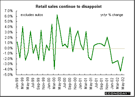 Germany — May manufacturing orders jumped 3.1 percent due almost exclusively to foreign bulk orders for German investment goods. Foreign orders jumped 9.6 percent, more than offsetting a 2.3 percent fall in domestic orders. Orders in the west rose 3.5 percent but sank 1.6 percent in the east.  May seasonally and calendar adjusted real retail sales (including autos and gasoline) fell 0.8 percent and 3.1 percent when compared with last year. Retail sales excluding autos and gasoline slipped 0.2 percent and 2.5 percent on the year.