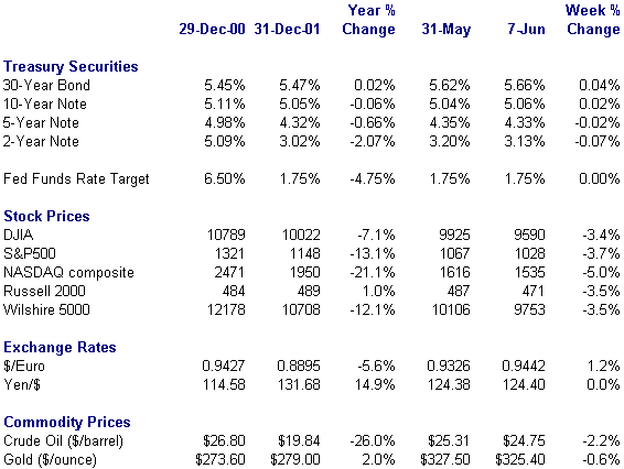 Weekly and yearly percent change column reflects percent changes for all components except interest rates. Interest rate changes are reflected in simple differences.