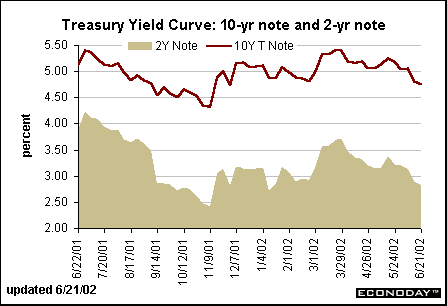 Reacting to the stock marketIn the past couple of weeks, bond investors have come to the realization that the Fed is not likely to raise the federal funds rate target soon. Bond investors have priced out the hike that had been expected in August and are now looking towards November as the most likely month in which the Fed will raise rates. While this week’s set of economic news was good, the bulk of the economic data continue to point to a slow-paced recovery. Bond investors are also reacting to the downslide in the equity market. As long as the equity market is in the dumps, many investors will turn to the Treasury market as a safe-haven investment. This helps to push down Treasury yields. The Treasury postponed the announcement and auction of the 2-year note pending the passage of debt-ceiling legislation that is stalled in Congress. Often bond market activity goes haywire when the Treasury messes with its schedule. Some thought that the 2-year note would feel the repercussions given that the auction didn’t go as planned, but other events are probably overwhelming this concern at the moment.