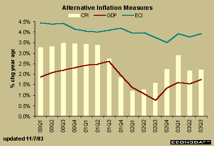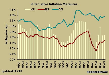 All three inflation measures accelerated slightly in Q3-<% Response.Write(Year(Now)) %> from the previous quarter. Nevertheless, inflation trends should remain subdued in coming quarters.