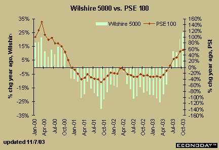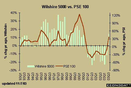 The Wilshire 5000 and the PSE 100 posted healthy year-over-year gains in October.