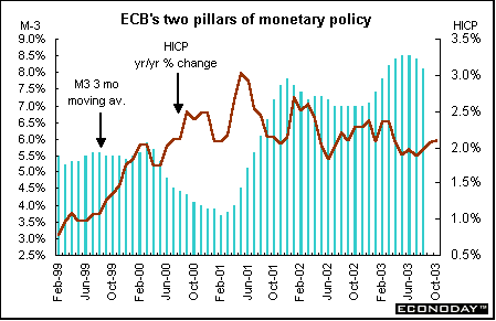 The European Central Bank decides monetary policy and member national central banks implement it. Together these banks form the European System of Central Banks (ESCB). The president is Jean Claude Trichet, a former governor of the Bank of France, who began an eight year term on November 1, 2003. The Bank was patterned after the German Bundesbank and follows many of its way of doing business.